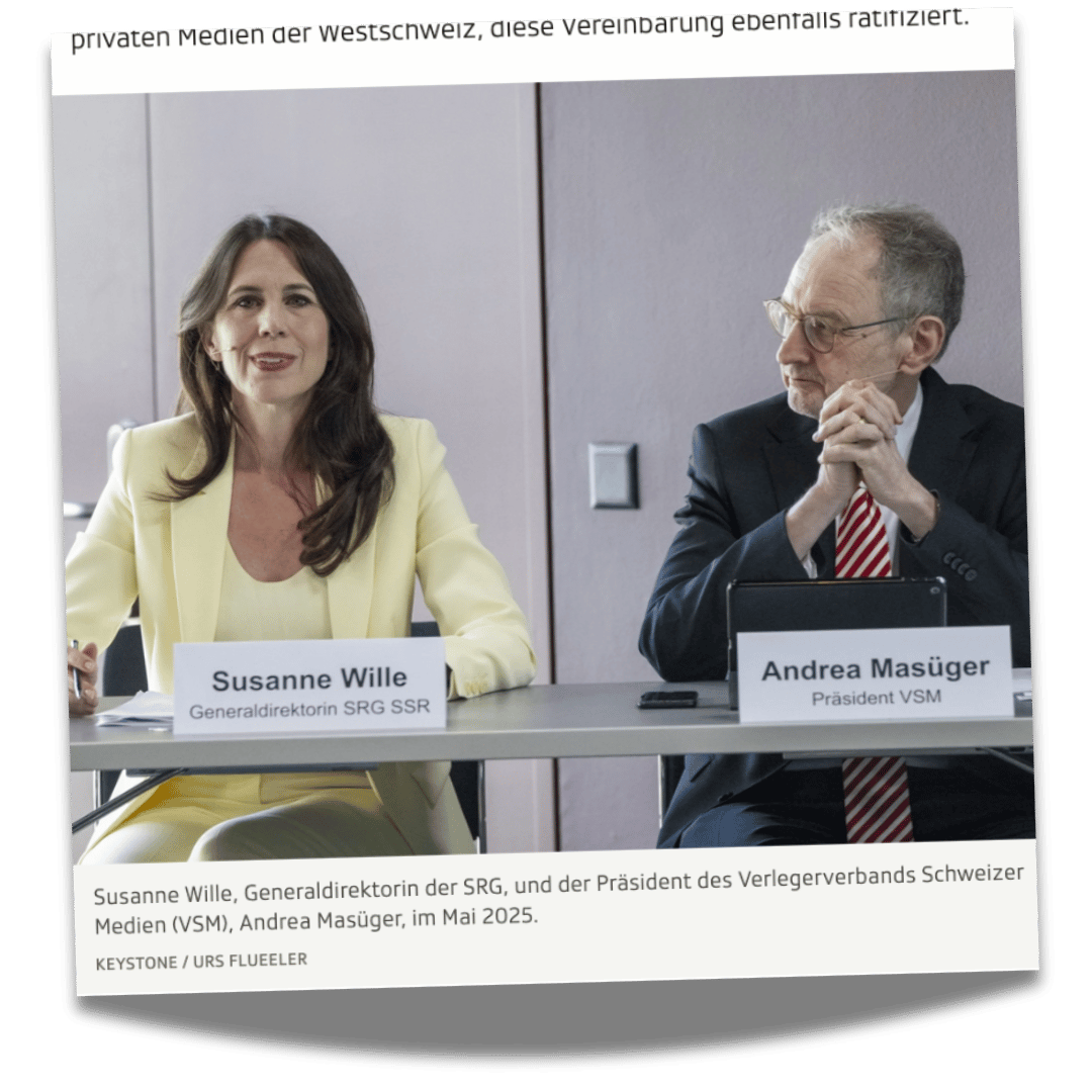 Damit die grossen Medienunternehmen wie NZZ oder CH Media sich nicht ebenfalls für die Halbierungsinitiative einsetzen, hat die SRG den privaten Verlegern grosse Zugeständnisse gemacht. Diese fühlen sich nämlich seit Jahren von der SRG bedroht.