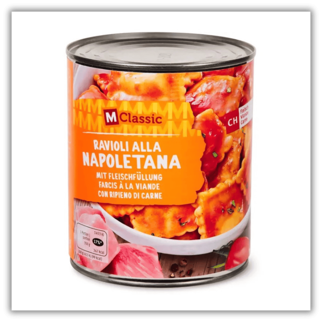 Blechen lieber für Blechbüchsen: Prepper:innen. (Screenshot: Migros)
