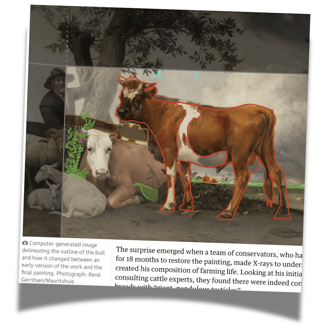 Verborgene Tiefen entdeckt: Paulus Potters Meisterwerk «Der Stier». (Screenshot: Guardian/René Gerritsen/Mauritshuis)
